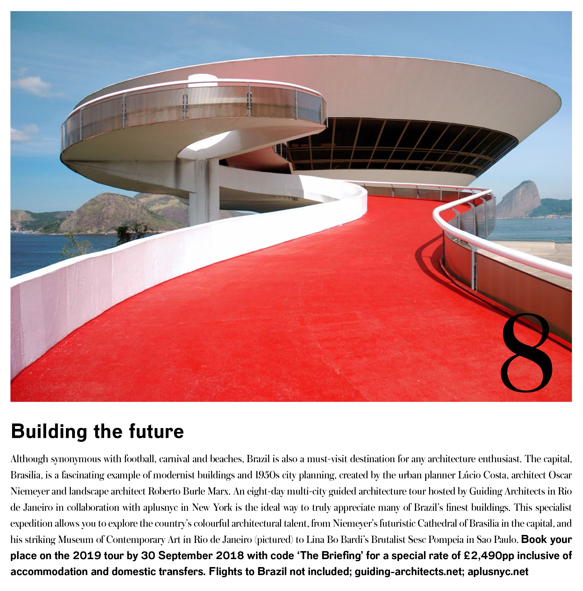 Our journey takes us to the three major Brazilian cities - Sao Paulo, Brasilia & Rio de Janeiro -�each one known for its architectural and cultural peculiarity. The local architect�Barbara Iseli from our Guiding Architects network partner Insight Architecture will lead this 9 day long architectural journey in English.